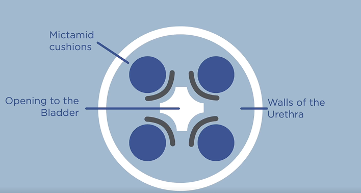Mictamid® Hydrogel is injected directly into the urethral wall to provide precise, localized structural support.